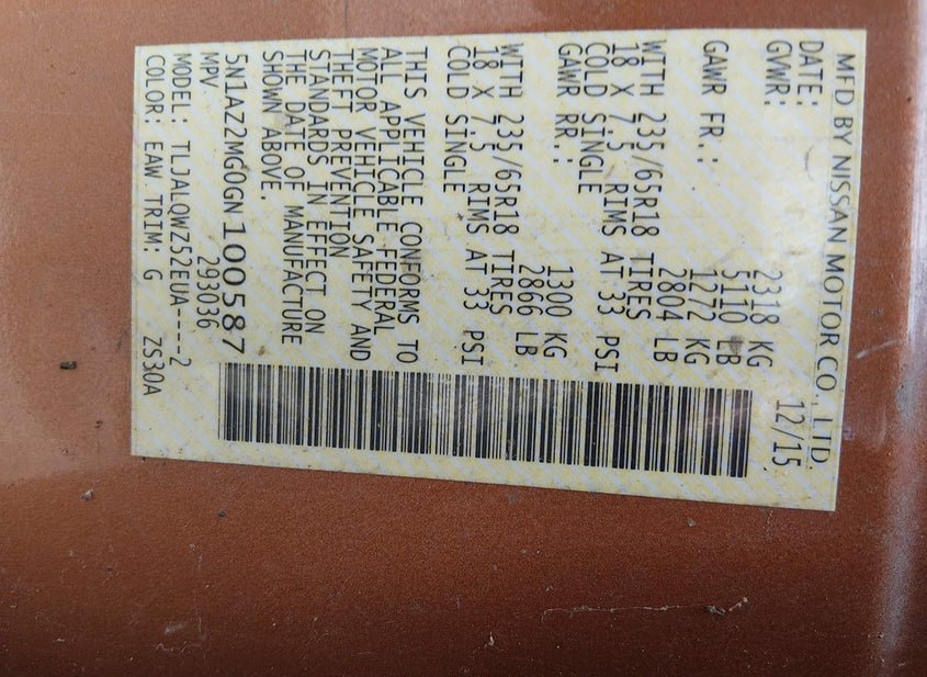 - VIN: 5N1AZ2MG0GN100587