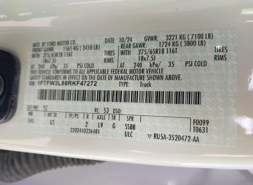 - VIN: 1FTFW3L88RKF47272