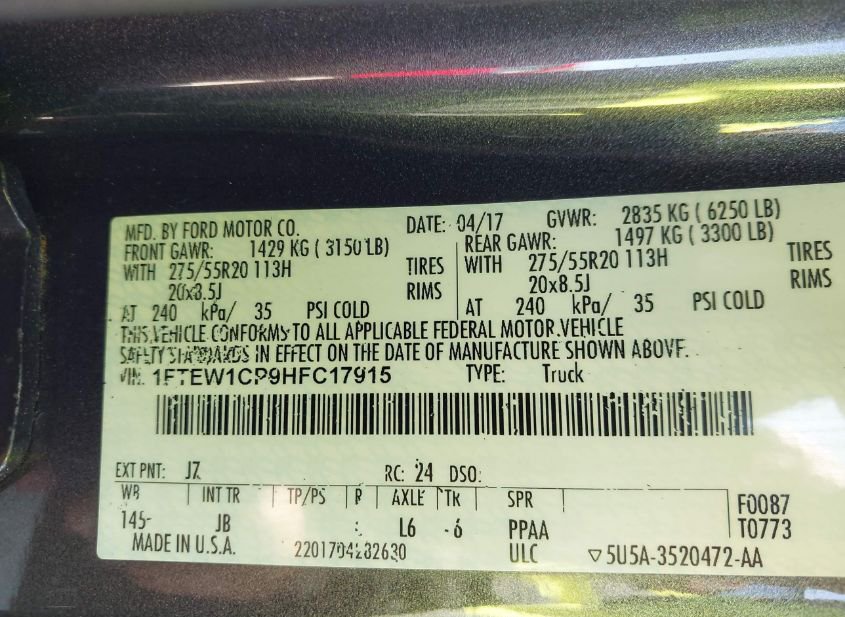 - VIN: 1FTEW1CP9HFC17915