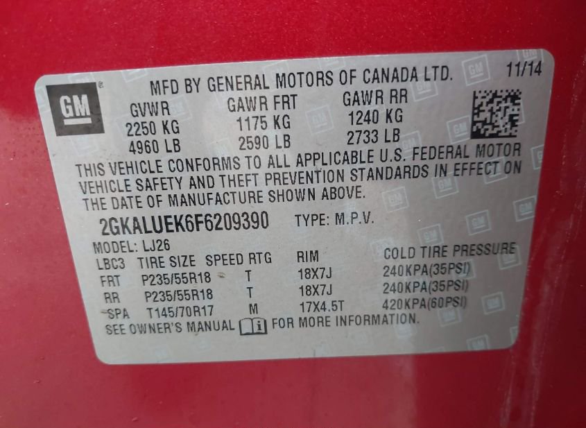- VIN: 2GKALUEK6F6209390