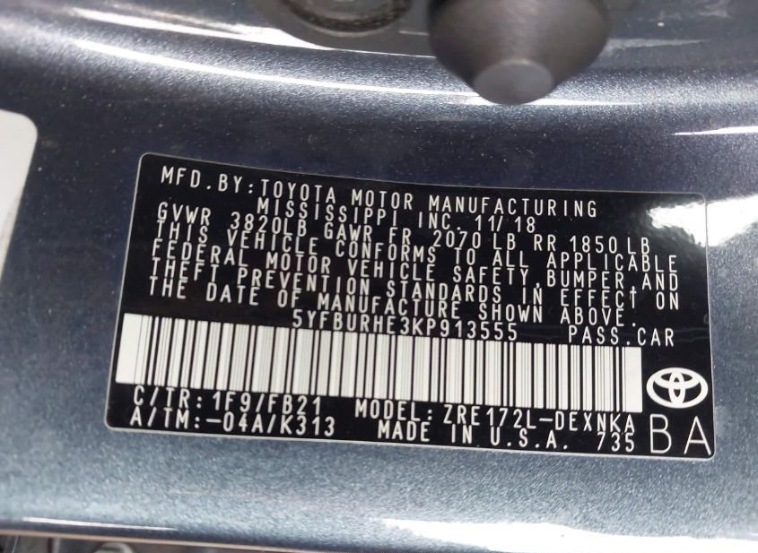 - VIN: 5YFBURHE3KP913555
