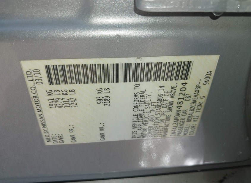 - VIN: 1N4AL2AP0AN481204