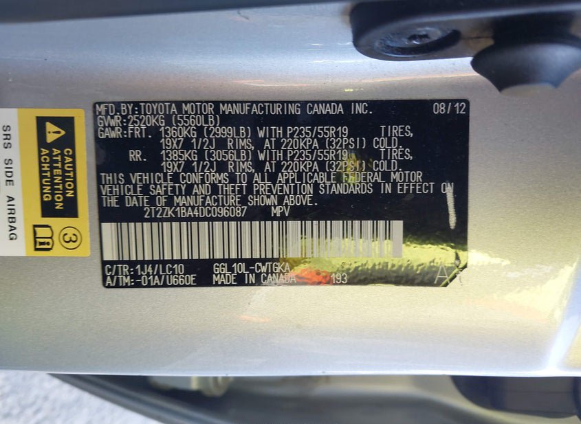 - VIN: 2T2ZK1BA4DC096087