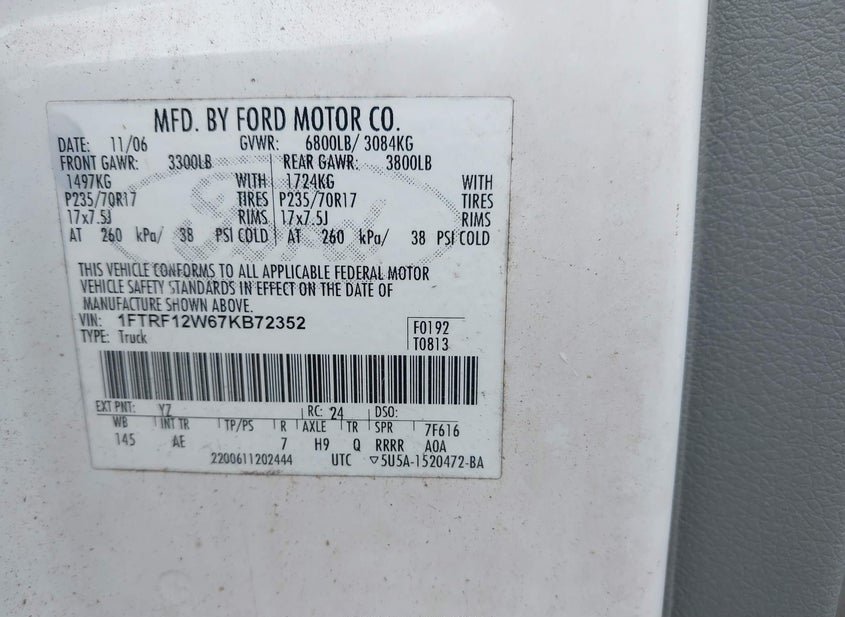 - VIN: 1FTRF12W67KB72352