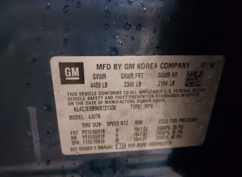 - VIN: KL4CJESB9KB721330