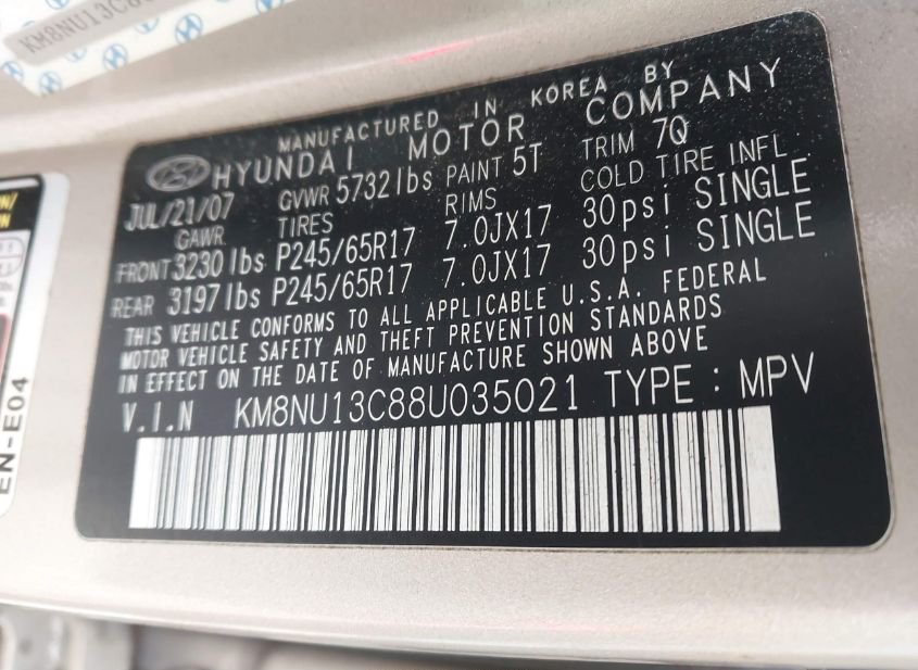 - VIN: KM8NU13C88U035021