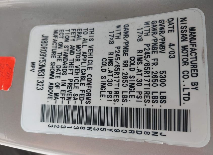- VIN: JN8DR09Y53W831323
