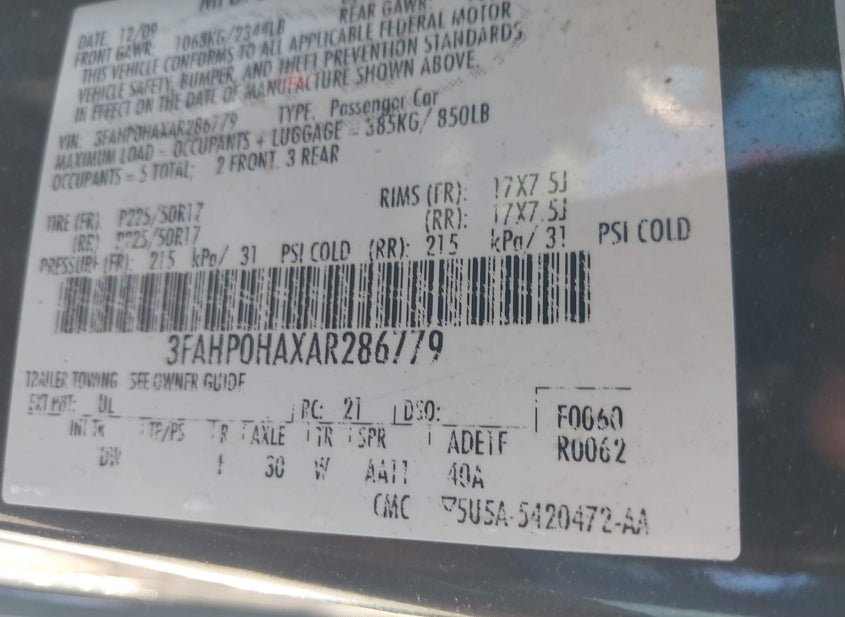 - VIN: 3FAHP0HAXAR286779