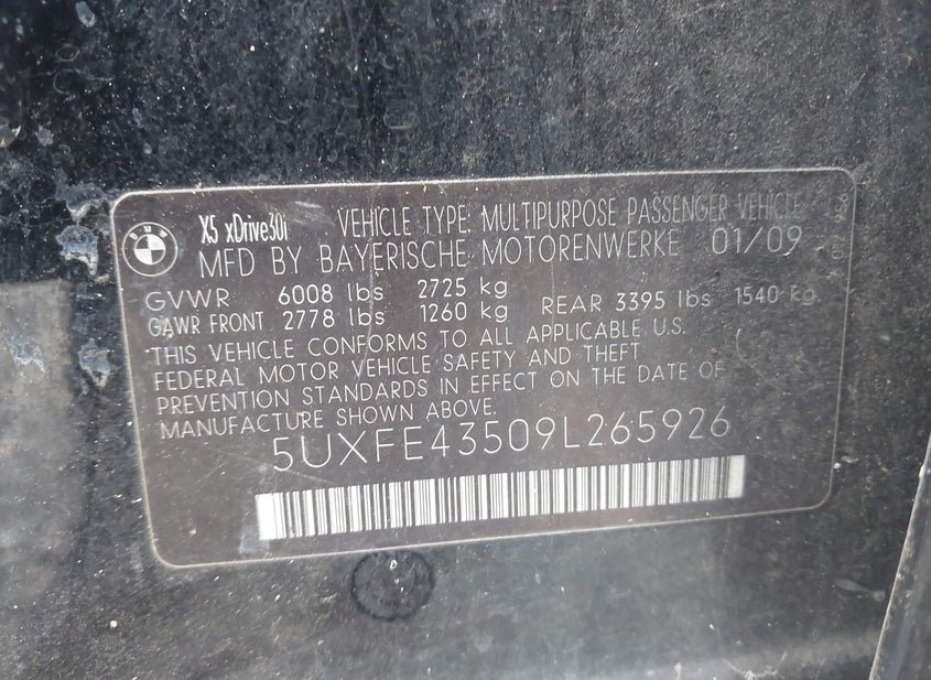 - Название лота: 2009 BMW X5 XDRIVE30I