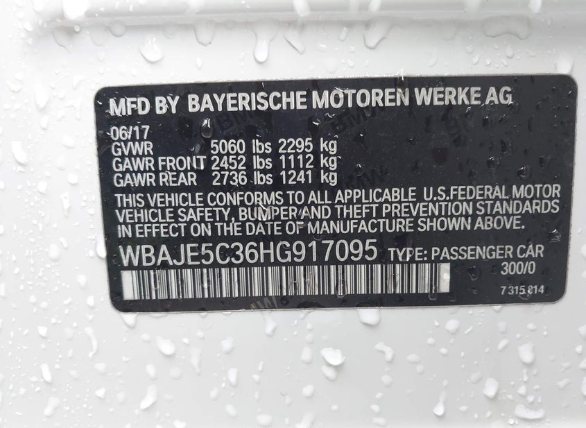 - VIN: WBAJE5C36HG917095