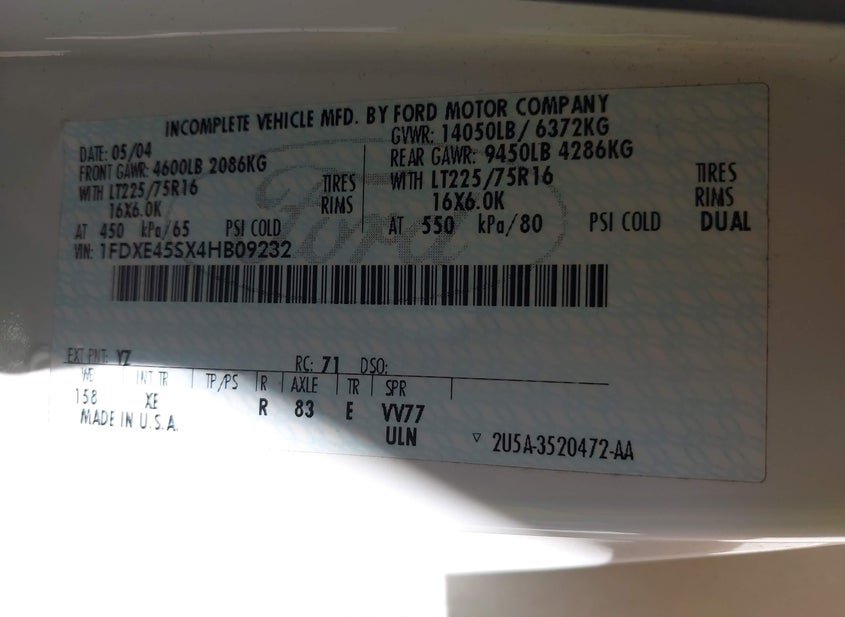 - VIN: 1FDXE45SX4HB09232