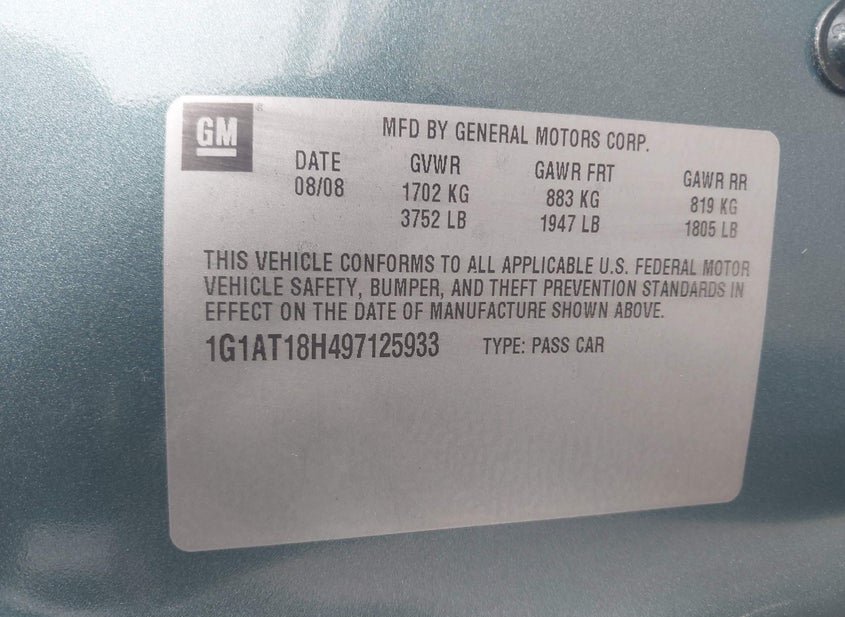 - VIN: 1G1AT18H497125933