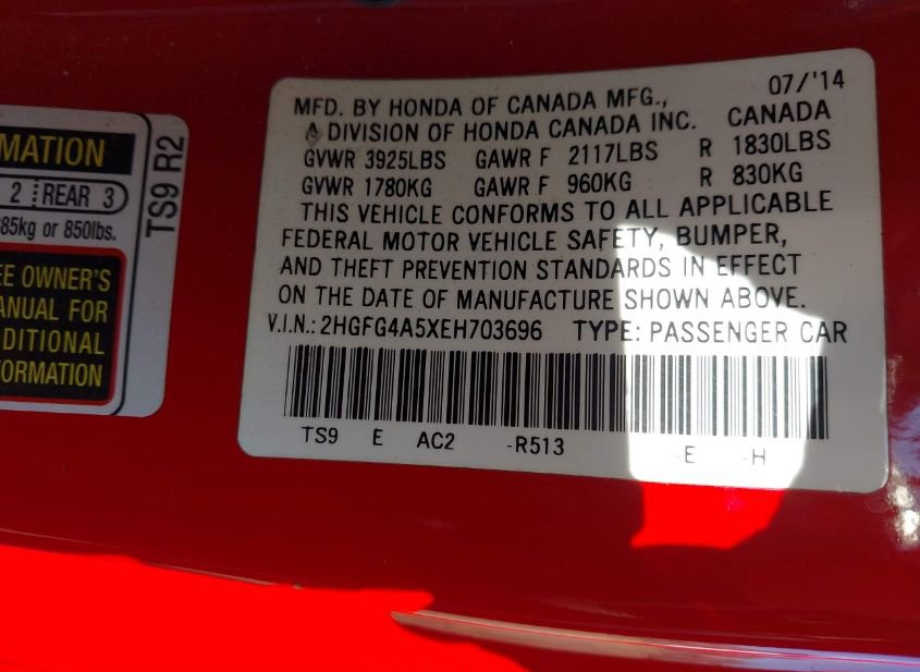 - VIN: 2HGFG4A5XEH703696