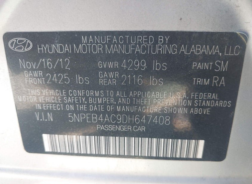 - VIN: 5NPEB4AC9DH647408