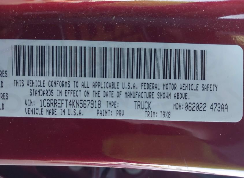 - VIN: 1C6RREFT4KN567918