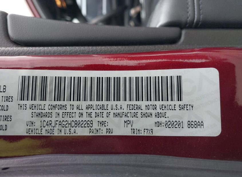 - VIN: 1C4RJFAG2HC802269