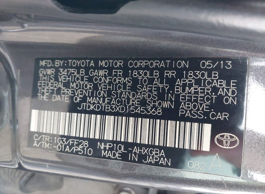 - VIN: JTDKDTB3XD1545368