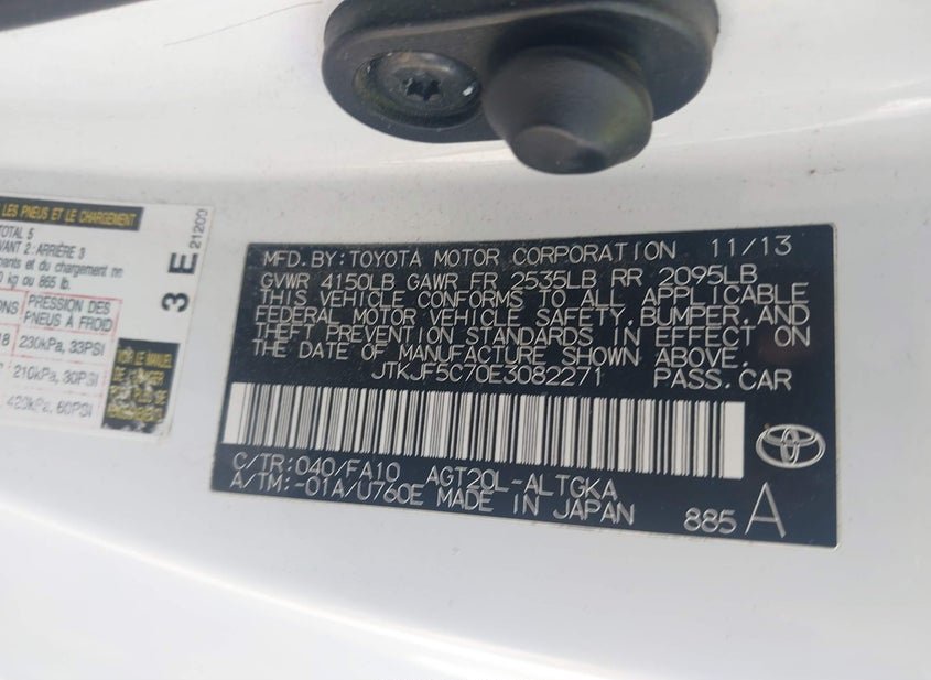- VIN: JTKJF5C70E3082271