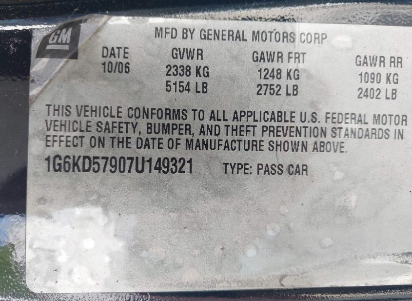 - VIN: 1G6KD57907U149321