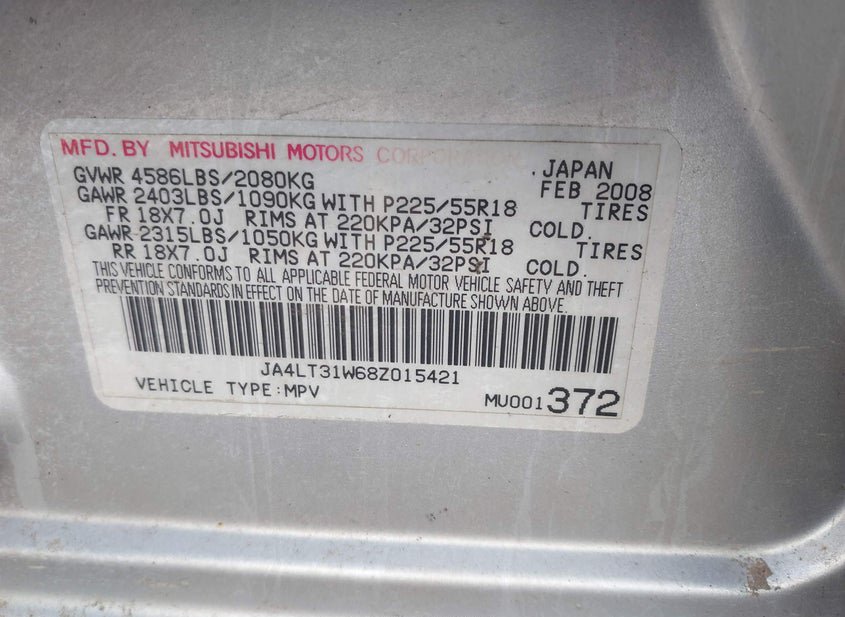 - VIN: JA4LT31W68Z015421