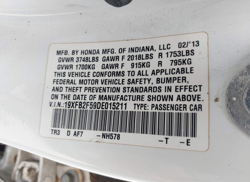 - VIN: 19XFB2F59DE015211