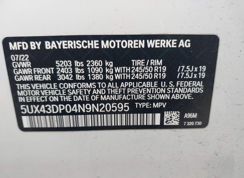 - VIN: 5UX43DP04N9N20595