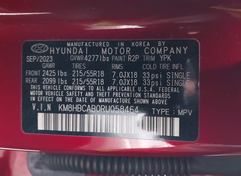 - VIN: KM8HBCAB0RU058464