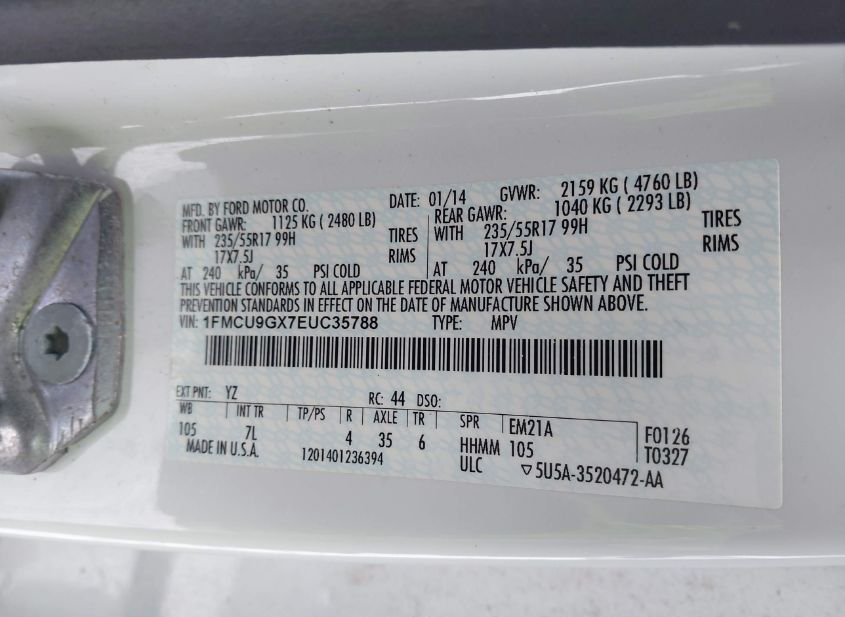 - VIN: 1FMCU9GX7EUC35788