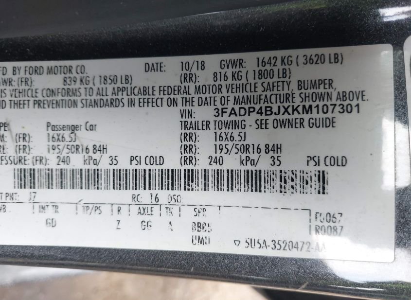 - VIN: 3FADP4BJXKM107301