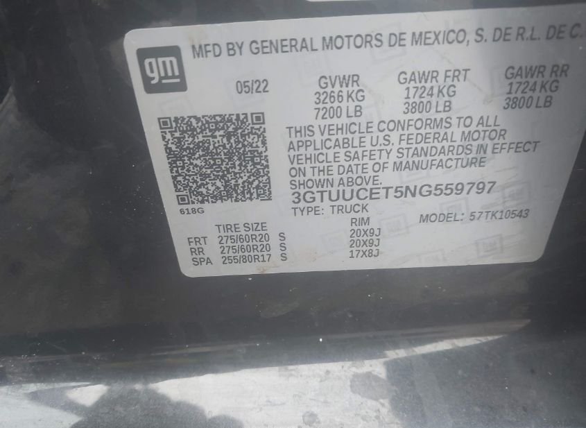 - VIN: 3GTUUCET5NG559797