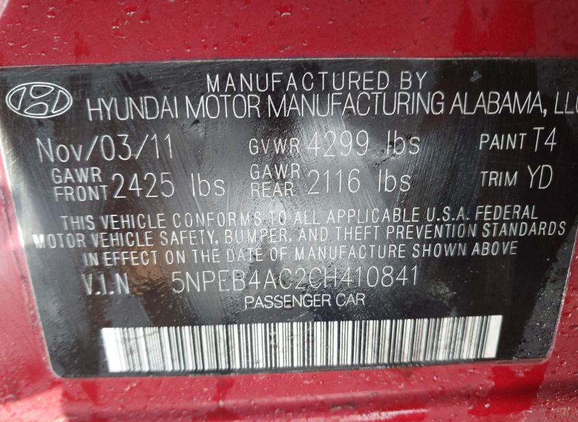 - VIN: 5NPEB4AC2CH410841