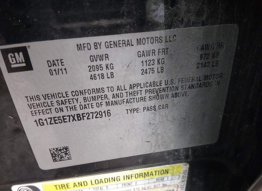 - VIN: 1G1ZE5E7XBF272916