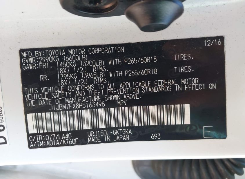- VIN: JTJBM7FX8H5163498