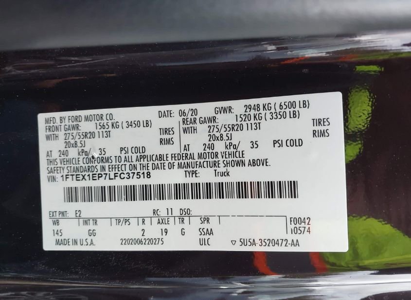 - VIN: 1FTEX1EP7LFC37518