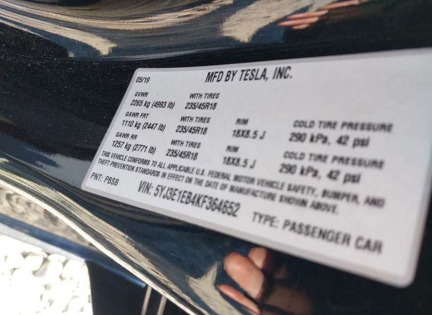 - VIN: 5YJ3E1EB4KF364652