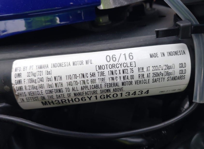 - Название лота: 2016 YAMAHA YZFR3