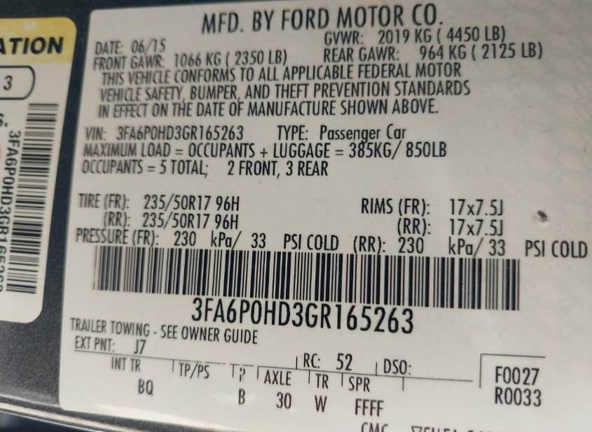 - VIN: 3FA6P0HD3GR165263