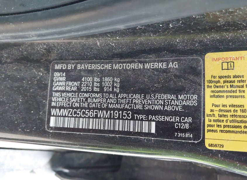 - VIN: WMWZC5C56FWM19153