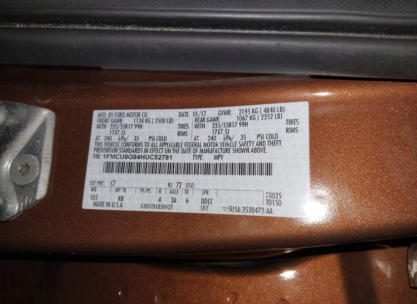 - VIN: 1FMCU9G94HUC52781