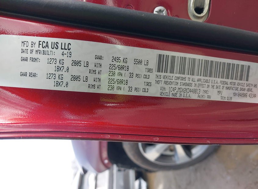 - VIN: 1C4PJMDX2KD448813