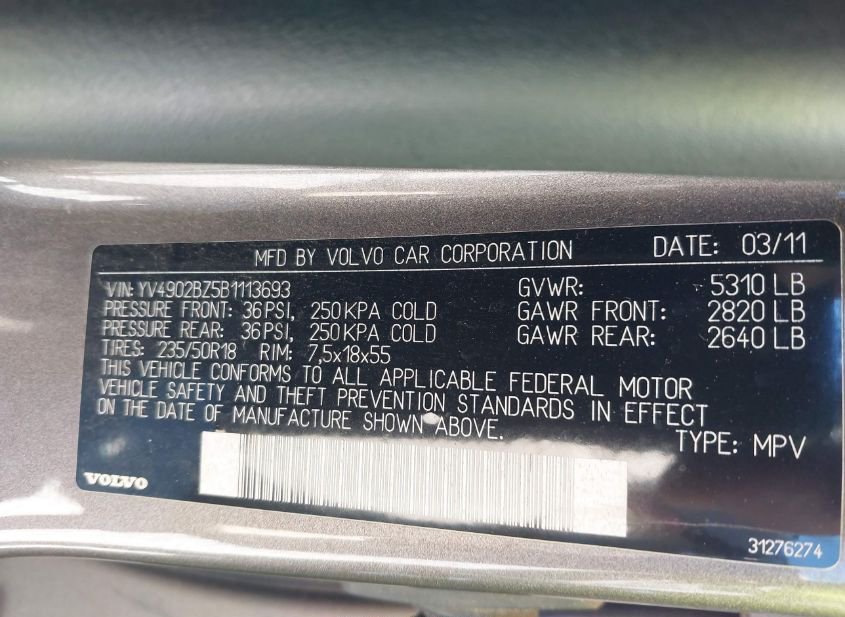 - VIN: YV4902BZ5B1113693