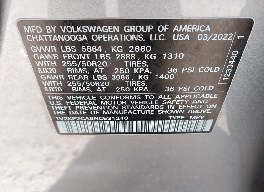 - VIN: 1V2KP2CA9NC531240
