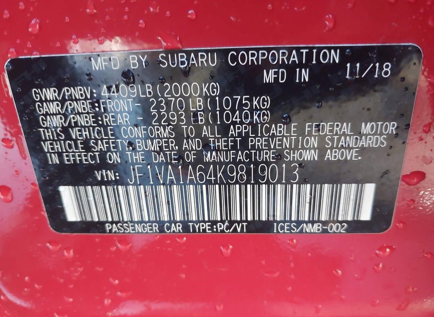 - VIN: JF1VA1A64K9819013