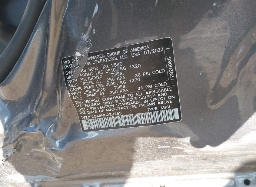 - VIN: 1V2JE2CA8NC229259