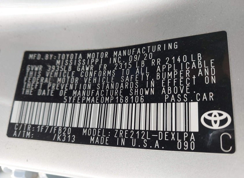 - VIN: 5YFEPMAE0MP168106