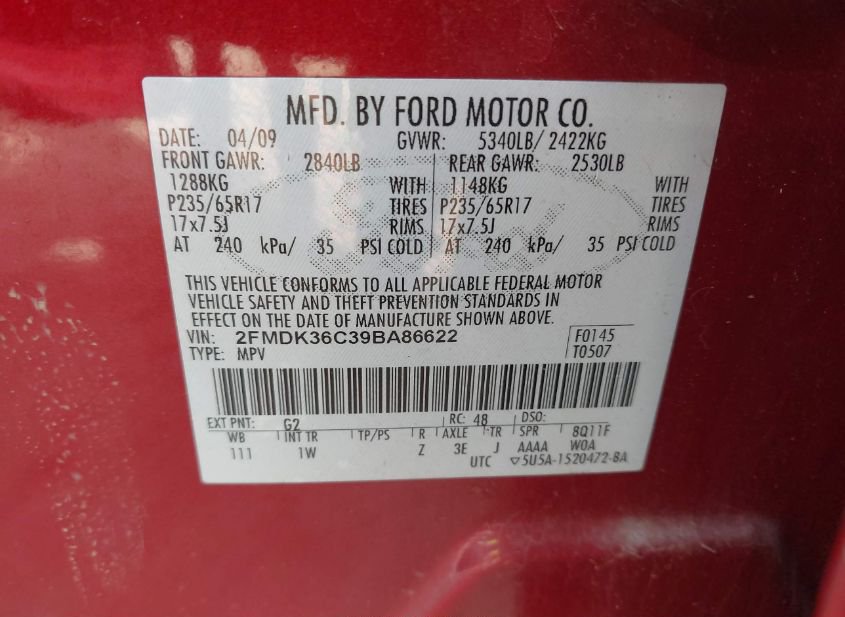 - VIN: 2FMDK36C39BA86622