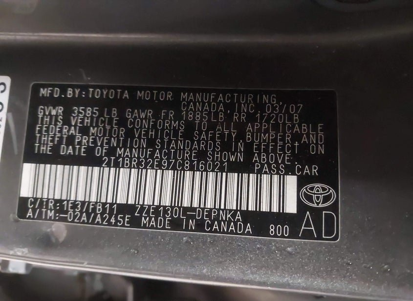 - VIN: 2T1BR32E97C816021