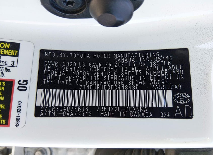 - VIN: 2T1BURHE3FC418486
