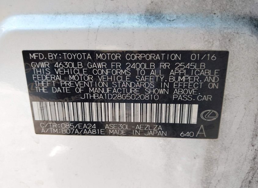 - VIN: JTHBA1D28G5020810