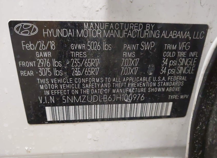 - VIN: 5NMZUDLB6JH100976